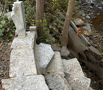 Daniil Kaminker works with a wide range of materials, including wood, natural and artificial stone, concrete and mixed media, creating durable outdoor, architectural and interior sculptures. Outdoor objects designed to age gracefully and become part of the landscape over time.